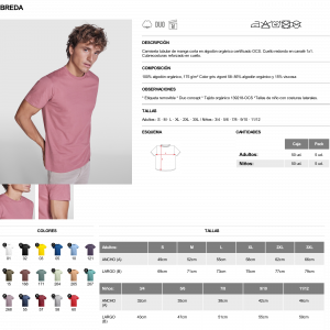 Material: 100% algodón, punto liso, 150 g/m². Color gris vigoré 58: 85% algodón / 15% viscosa.