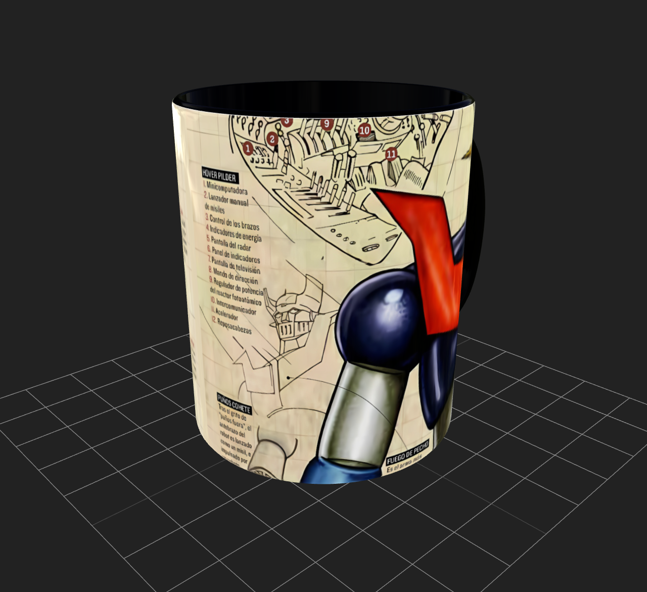 Frikitaza de Mazinguer z , fondo y asa color negro.